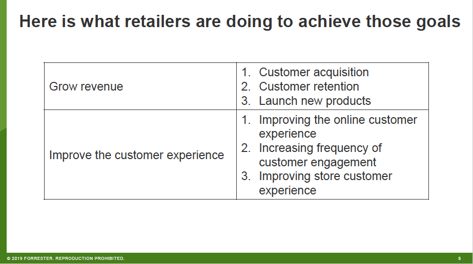 Secondo Forrester i 4 principali obiettivi per i retailers nel prossimo anno: