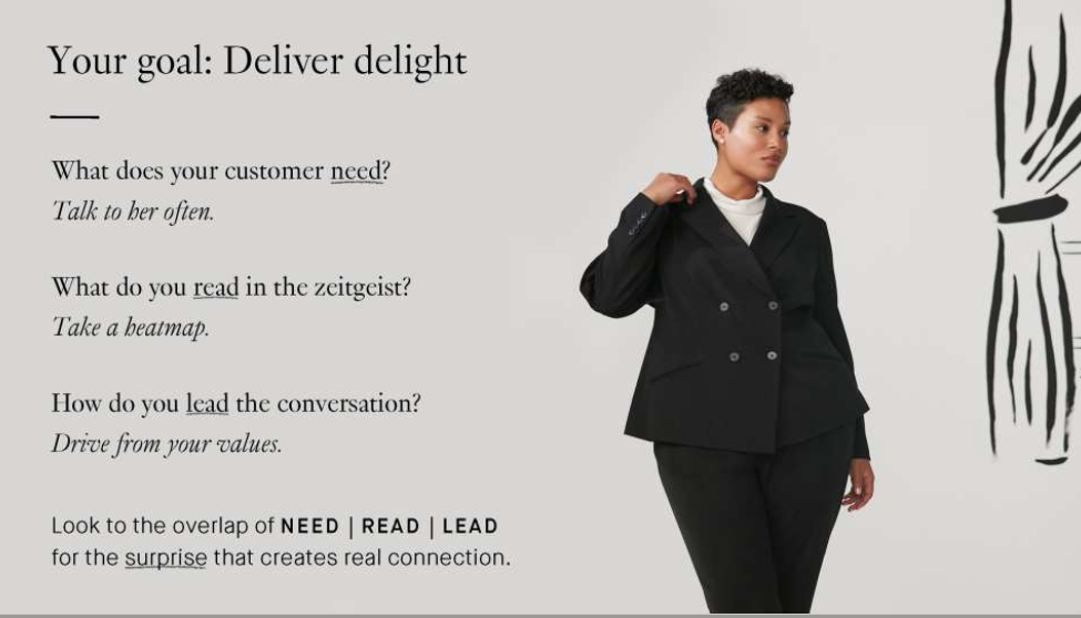 Ci sono alcuni brand che nei valori e mission perseguono obiettivi chiari e distintivi nel sorprendere, gratificare, deliziare i clienti, con elevata personalizzazione ( prodotto custom o servizio) e analisi dei dati in termini di preferenze, gusti e stili.