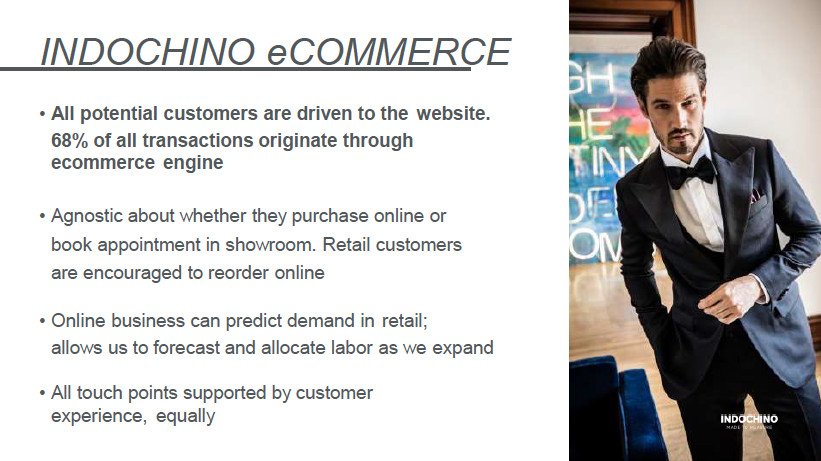 Negli showrooms si prendono appuntamenti, si possono presentare oltre 100 campioni di tessuto e di camiceria. I clienti sono assistiti da consulenti di immagine all’interno del negozio, noti come “Style Guides“, poiché sono incoraggiati ad assumere il ruolo di designer anche per i propri abiti su misura. Propongono ai clienti una gamma di tessuti di alta qualità e infinite personalizzazioni gratuite e, dotati di un iPad, progettano abiti, camicie, blazer, pantaloni e gilet personalizzati, che vengono poi realizzati con le loro misure precise e consegnati a casa del cliente dopo tre settimane.