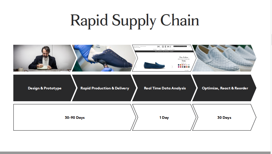 M. Gemi, con sede a Boston e Firenze, offre calzature italiane di lusso fatte a mano ad un prezzo inferiore rispetto ai marchi di lusso tradizionali (gli stili correnti vanno da $ 128 a $ 498), incarnando la filosofia del cofondatore Ben Fischman che definisce “post-lusso”. Con 15 fabbriche italiane e 32 milioni di dollari in fondi di venture capital, i nuovi prodotti escono ogni settimana in piccole edizioni limitate.