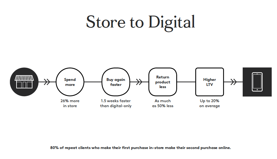 Il marchio è focalizzato sulla costruzione di relazioni con i clienti tramite negozi di prova che si integrano perfettamente con il proprio negozio online. Per i clienti che preferiscono acquistare solo online, il marchio attiva un processo di produzione che garantisce l’adeguatezza dello stile ad ogni modello di scarpa, rendendo più facile l’acquisto senza provarlo.
