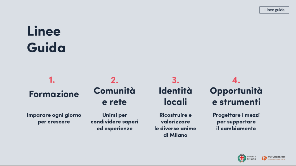 In coda alla ricerca, è presente un manifesto che include le 14 proposte di attività per sostenere lo sviluppo dei nuovi negozi di quartiere di Milano.