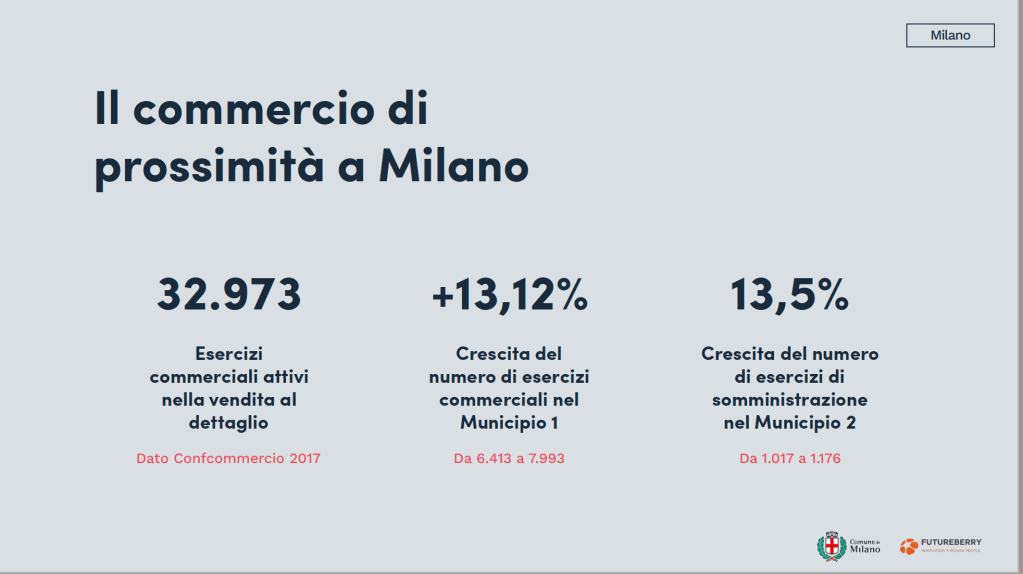 Quali sono i cambiamenti in atto nel retail a livello globale? E quali sono le realtà più innovative a Milano? Nel maggio del 2019 Futureberry, società di consulenza, ha presentato il report “Nuovi negozi di quartiere, una ricerca sul commercio di prossimità a Milano”, realizzato per l’Assessorato al Commercio e alle Attività Produttive del Comune di Milano.